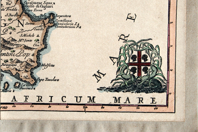 Isola e Regno di Sardegna, Coronelli, 1600 (incisione, colore) - riproduzione di carta antica