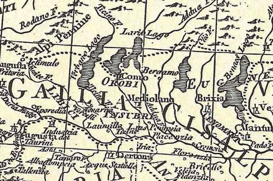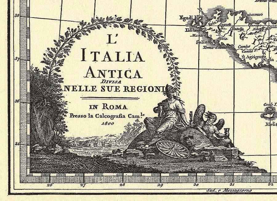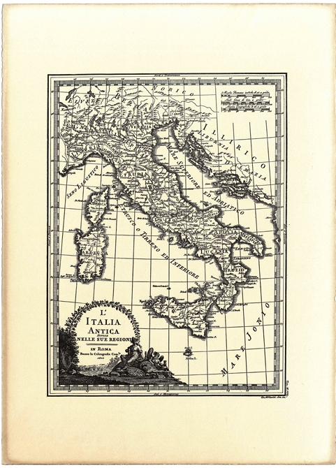 Italia antica divisa nelle sue regioni, Cassini, 1800 (incisione, B/N) - riproduzione di carta antica