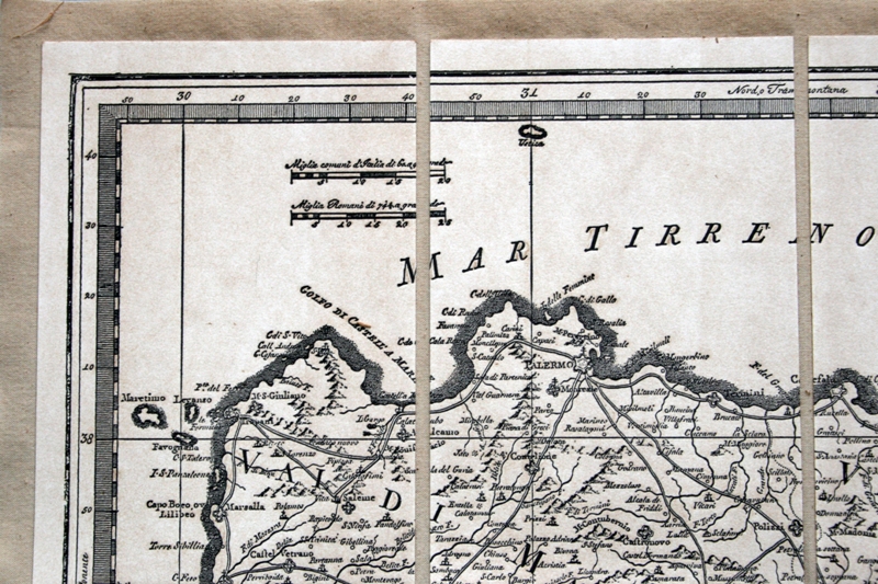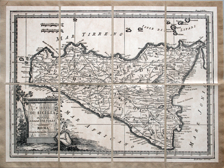 L’isola di Sicilia divisa nelle sue valli, Cassini, 1790 (incisione, B/N) - riproduzione di carta antica