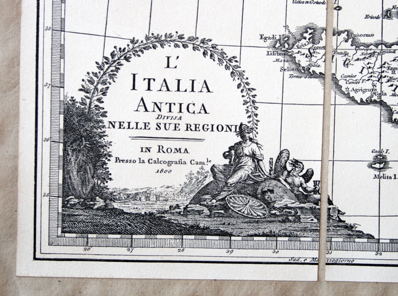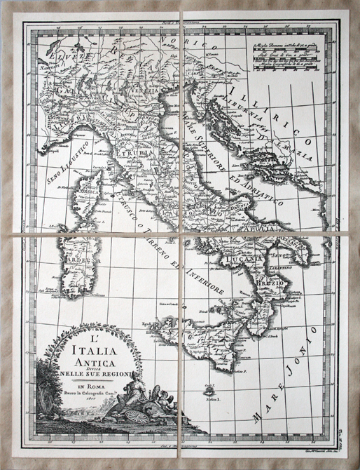 L’Italia antica divisa nelle sue regioni, Cassini, 1800 (incisione, B/N) - riproduzione di carta antica