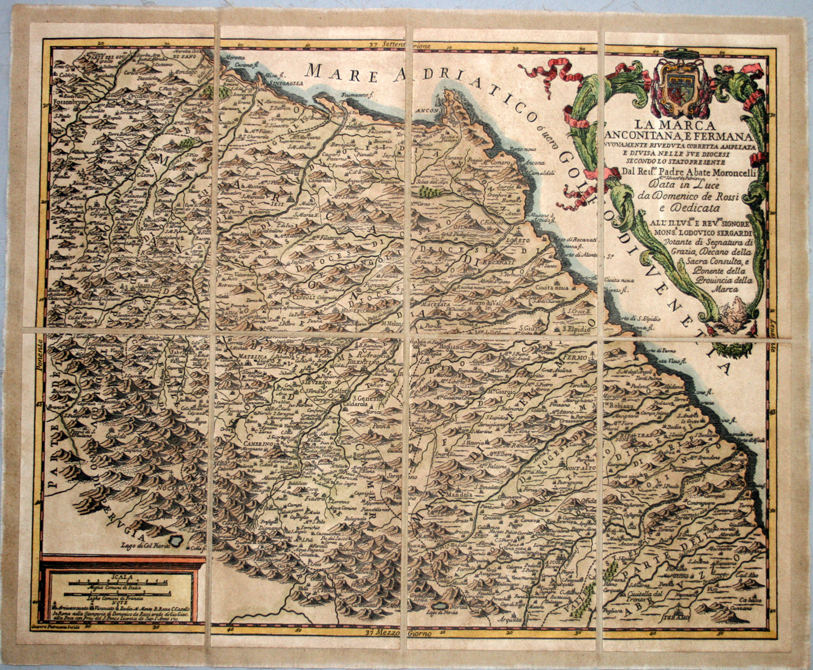 La Marca Anconitana e Fermana, Moroncelli, 1700 (incisione, colore) - riproduzione di carta antica