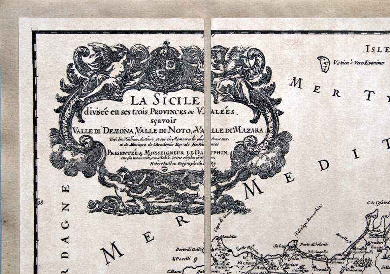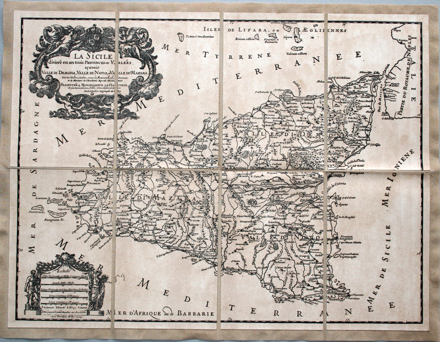 La Sicile, Jaillot, 1600 (incisione, B/N) - riproduzione di carta antica