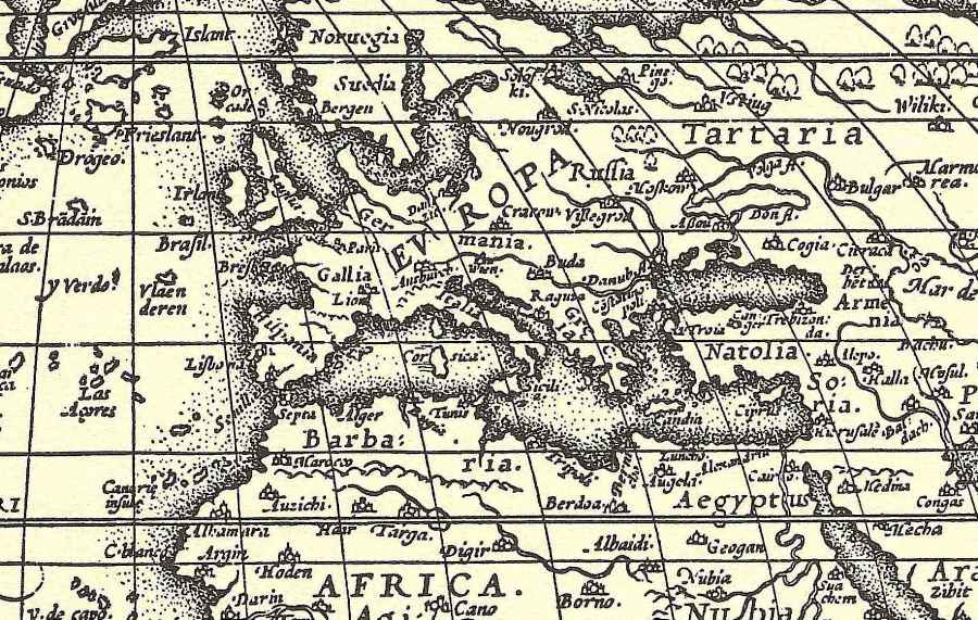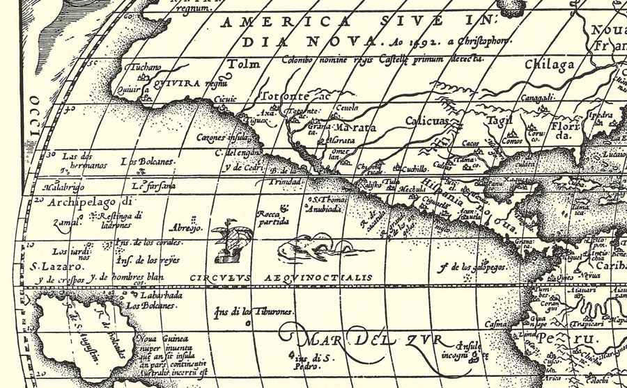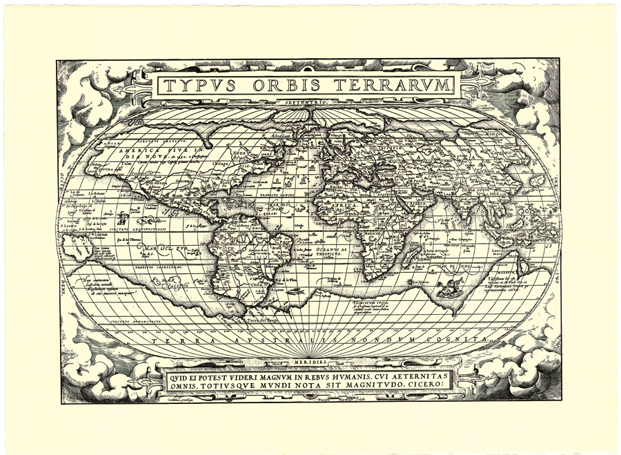 Mondo typus orbis terrarum, Ortelius, 1564 (incisione, B/N) - riproduzione di carta antica