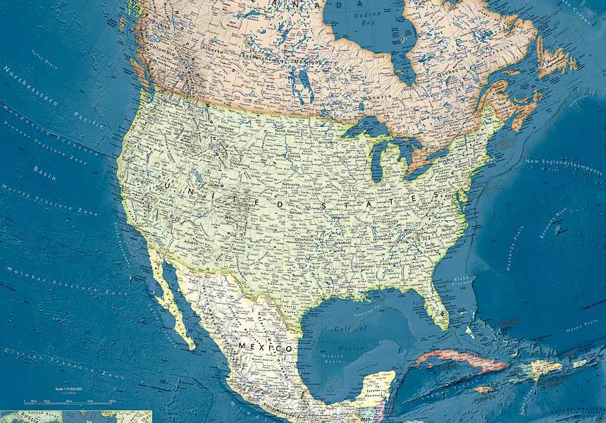 Nord America politico/fisico - carta geografica murale