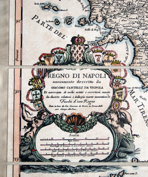 Regno di Napoli, Cantelli da Vignola, 1700 (incisione, colore) - riproduzione di carta antica