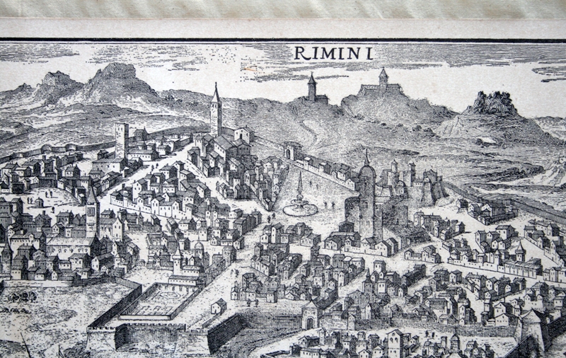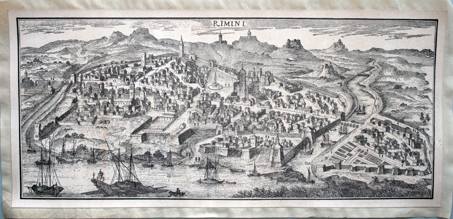 Rimini, Salmon, 1600 (incisione, B/N) - riproduzione di carta antica