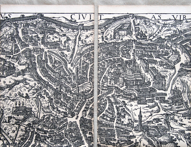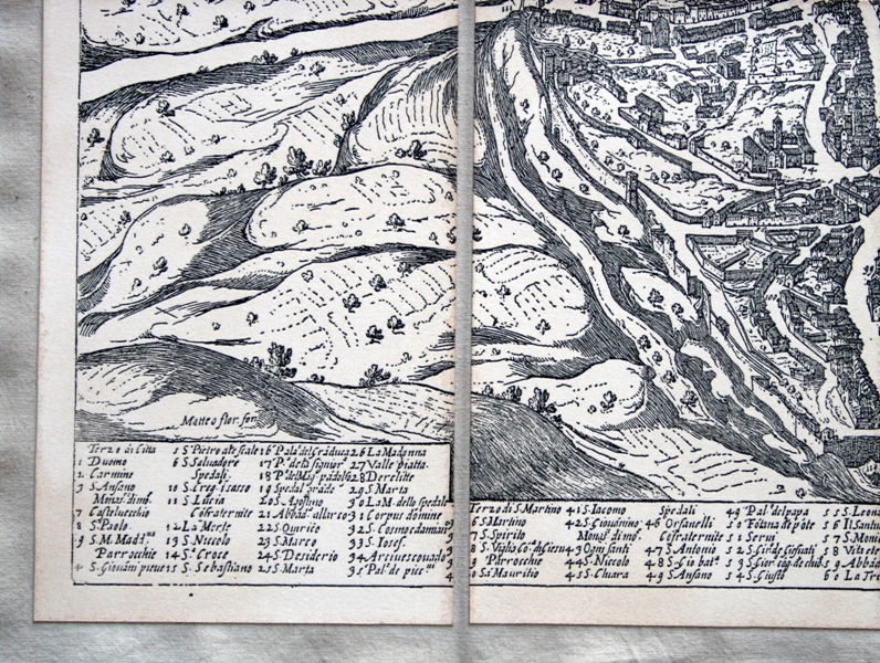Sena Vetus Civitas Virginis, Florimi, 1600 (incisione, B/N) - riproduzione di carta antica