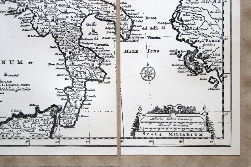 Tabula Italiae, De Wit, 1685 (incisione, B/N) - riproduzione di carta antica